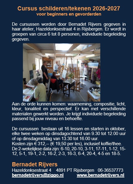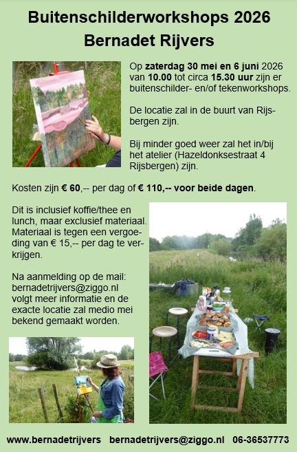Atelierbezoek op afspraak mogelijk, mail naar bernadetrijvers@ziggo.nl